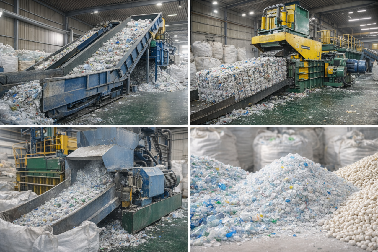 各種プラスチック類の性質や状態に応じて、プレス加工・粉砕加工などの処理を行い、再資源化に適した形へ加工します。
